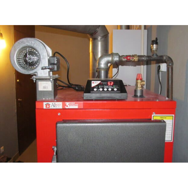 - Для регулирования подачи воздуха под решетку котла имеется два режима : с помощью регулятора тяги или в ручную. -